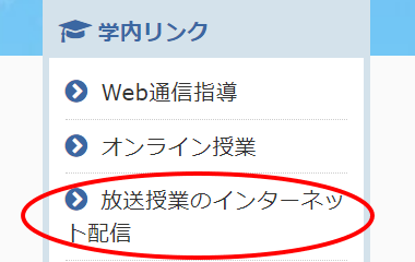 システムWAKABAのホーム画面右側にある「放送授業のインターネット配信」から視聴してください。
